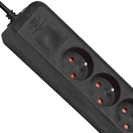 ✳️ Gniazdo przedłużacza wyposażone w dodatkowe zabezpieczenie przed przypadkowym dotknięciem (czerwona zaślepka).