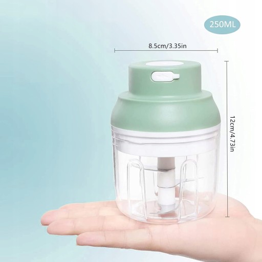 - 【Elektryczna krajalnica do cebuli】: Rozdrabniacz ma pojemność 250 ml. Jest mały, łatwy w obsłudze i wydajny. Można go obsługiwać jednym przyciskiem. Wystarczy nacisnąć wyłącznik zasilania, aby szybko pokroić jedzenie. Wielofunkcyjny elektryczny rozdrabniacz eliminuje kłopotliwe ręczne siekanie cebuli i czosnku.