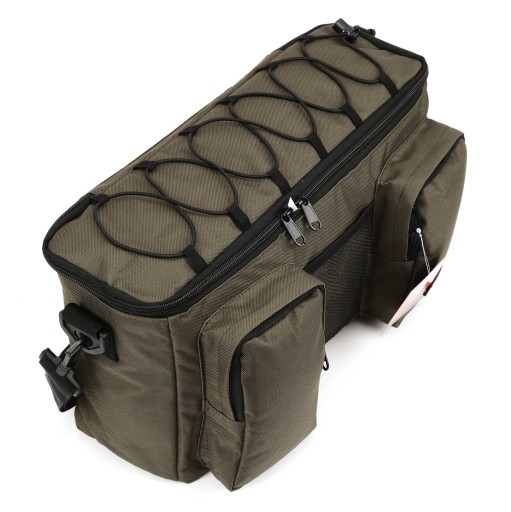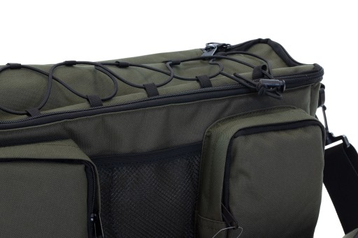 Poręczna torba wędkarska wykonana z nieprzemakalnego neoprenu. Posiada pojemną komorę główną, dwie kieszenie z przodu zapinane na zamki oraz jedną siateczkową kieszonkę. Na pokrywie górnej znajduje się guma ze ściągaczem, dzięki czemu można zabrać dodatkowy bagaż, nie mieszczący się w środku. Torba posiada mocny i regulowany pas na ramię.