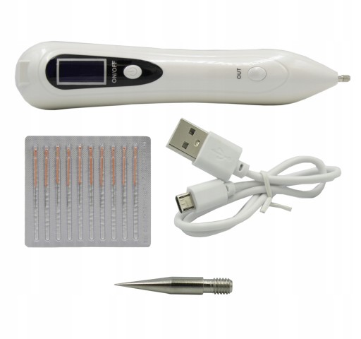 - Zestaw zawiera: długopis plazmowy, kabel micro USB, instrukcję obsługi, 10 igieł zabiegowych, 1 duża igła, opakowanie producenta