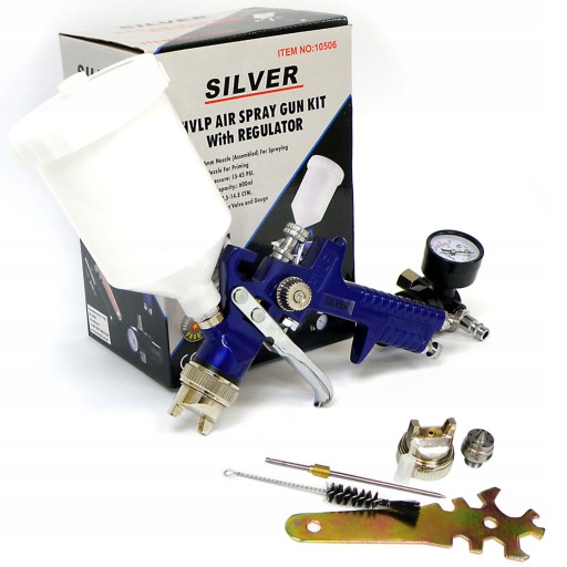 РАСПЫЛИТЕЛЬ HVLP 600 МЛ С СЕРЕБРЯНЫМИ НАСАДКАМИ: 1,4 + 1,7 ММ + ПЕРЕХОДНИК