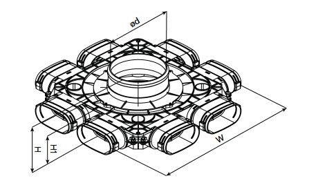 - Rozdzielacz służy do rozprowadzenia powietrza do kanałów elastycznych systemach wentylacji nawiewnej i wywiewnej pomieszczeń. Rozdzielacz do rekuperacji z 8 króćcami przyłączeniowymi o wymiarach 52x117 mm. Rozdzielacz łączy się z rekuperatorem za pomocą kanału wentylacyjnego fi 160 mm. Powietrze z rozdzielacza jest dostarczane lub wyciągane ze skrzynek rozprężnych za pomocą owalnych, elastycznych przewodów wentylacyjnych 52x117 mm.