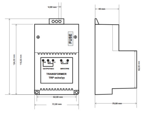 - zabezpieczenie przeciwzwarciowe i przeciążeniowe: bezpiecznik F w obwodzie pierwotnym transformatora(T 315 mA/250V),