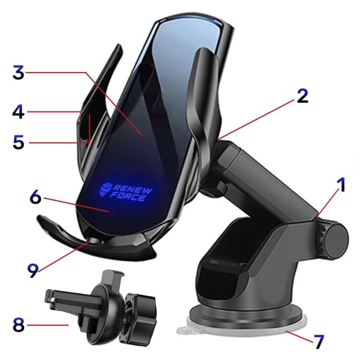 ✅ Uchwyt otwiera się i zamyka automatycznie. W celu umieszczenia urządzenie w uchwycie, przyłóż telefon do czujnika (czujnik znajduje się w dolnej części przedniego panelu), a ramiona zamkną się automatycznie, zabezpieczając urządzenie.