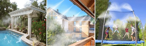 Kurtyna wodna stworzy mgiełkę / kurtynę, która jest niesamowicie przyjemnym rozwiązaniem w upalne dni, dla nas jak i do ogrodu jako system nawadniający.