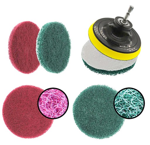 SZCZOTKI CZYSZCZĄCE NA WIERTARKĘ 1/4" PADY ZESTAW 10 EL. VERKE