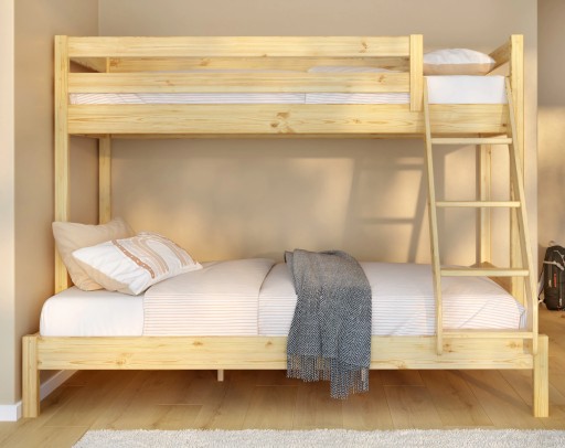 Szukając optymalnego rozwiązania dla większych rodzin lub wnętrz o ograniczonych rozmiarach, warto zwrócić uwagę na piętrową konstrukcję. Pozwala ona oszczędzić miejsce, jednocześnie umożliwiając komfortowy sen trzem osobom, bez zajmowania nadmiernej powierzchni w sypialni. Wybierając produkt wykonany z naturalnego drewna sosnowego, inwestuje się w mebel nie tylko trwały, ale również estetyczny, który wprowadza ciepło i urok do każdego pomieszczenia. Bezpieczeństwo najmłodszych to priorytet. Dlatego wysoka barierka łóżka piętrowego została zaprojektowana tak, aby zapewniać maksymalne zabezpieczenie podczas snu i zabawy. Solidna konstrukcja oraz jakość materiałów gwarantują spokój umysłu każdemu opiekunowi. Wymiary materacy: góra 90×200, dół 140×200. Idealne dla tych, którzy poszukują funkcjonalności i estetyki w jednym.