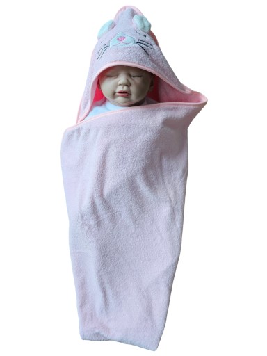 Okrycie kąpielowe dające miłe uczucie ciepła po kąpieli zdobione wysokiej jakości haftem na kapturku. Kapturek pozwala na okrycie wilgotnej główki dziecka.