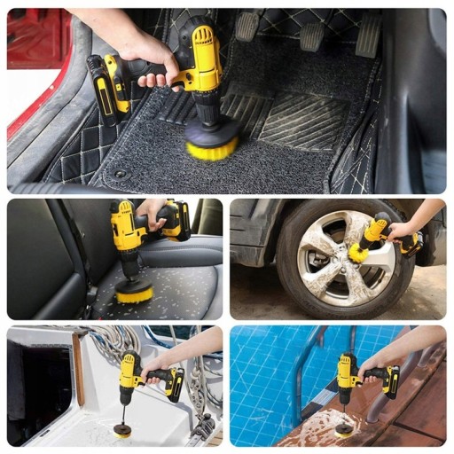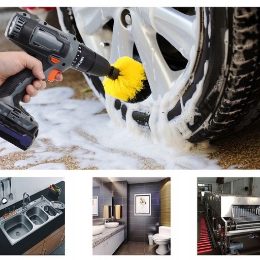 Zestaw do sprzątania składa się, aż z trzech szczotek czyszczących o różnym kształcie i różnych średnicach takich jak: 5, 8.5 i 10 cm, dzięki temu są bardzo praktyczne w zastosowaniu. Różnorodność końcówek sprawia, że pasują one do czyszczenia toalety, umywalki, kabiny prysznicowej oraz wanny. Końcówka o dużej średnicy sprawdzi się przy czyszczeniu podłóg, szafek, a także pokrowców lub tapicerki w aucie. Dzięki mniejszej końcówce wyczyścimy fugi oraz felgi samochodowe.