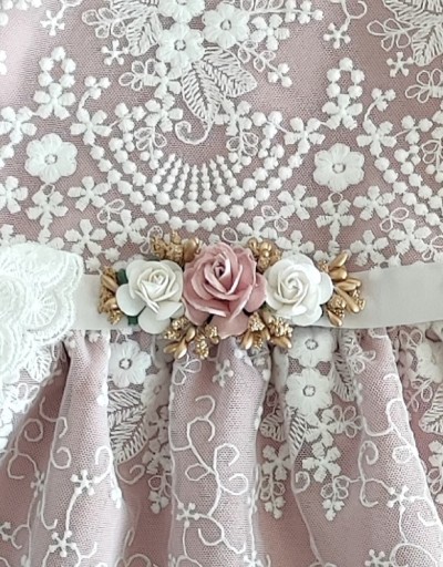 Pasek z różowych kwiatów o długości 145 cm do ewentualnego przycięcia.