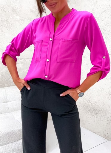 ЭЛЕГАНТНАЯ БЛУЗКА ЖЕНСКАЯ, СВОБОДНАЯ РУБАШКА, ДЕКОРАТИВНЫЕ ПУГОВИНЫ PL PROD РОЗОВАЯ ФУКСИЯ XL