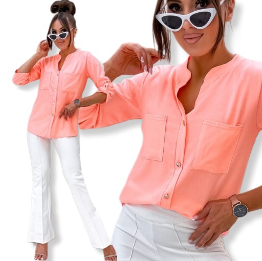 ЭЛЕГАНТНАЯ БЛУЗКА ЖЕНСКАЯ, СВОБОДНАЯ РУБАШКА, ДЕКОРАТИВНЫЕ ПУГОВИНКИ PL PROD APRICOT S