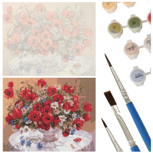 Na czym polega malowanie po numerach? Na płótnie znajduje się nadrukowany obrazoraz cyferki. Każda cyfra odpowiada innemu kolorowi farbki. A Twoim zadaniem jest pomalowanie pól odpowiednim kolorem - to takie proste!