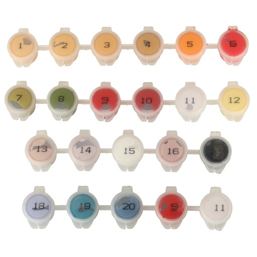 Ilość farbek jest idealnie dopasowana, do tego ile jej potrzebujesz do pomalowana całego obrazu. Tak więc bez obaw, z pewnością nie zabraknie Ci żadnego koloru!