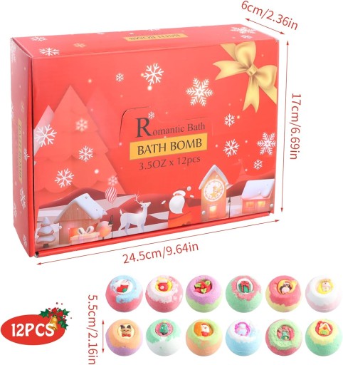 Zanurz się w świątecznej atmosferze dzięki zestawowi 12 bomb do kąpieli o różnych zapachach i wyjątkowym świątecznym designie. Idealny prezent, który łączy relaks i pielęgnację skóry, wzbogacony pięknym opakowaniem tematycznym.