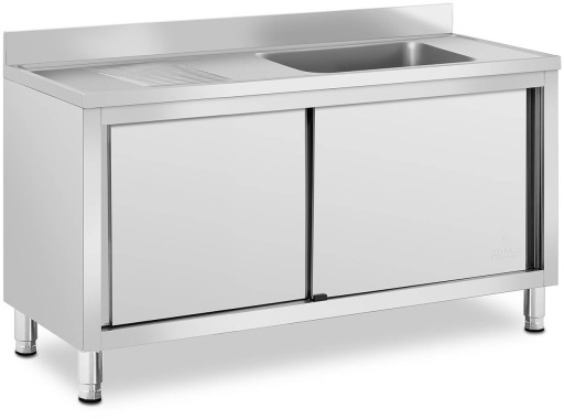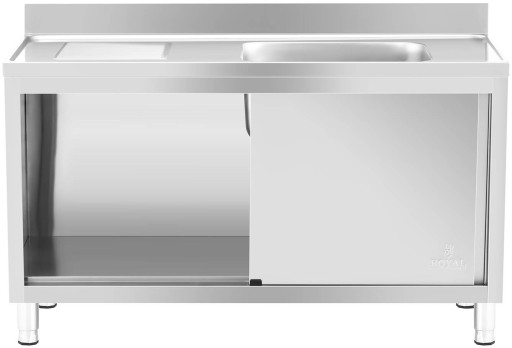 Zlew basen gastronomiczny jednokomorowy z szafką z drzwiami przesuwnymi prawy 140 x 60 x 94.5 cm