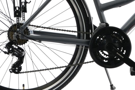 Jest to solidny polski rower z aluminiową ramą na kołach 28″, oraz na osprzęcie Shimano TOURNEY (21 przełożeń). Osprzęt Shimano zapewnia cichą pracę, bezawaryjność oraz bezproblemową zmianę przełożeń.