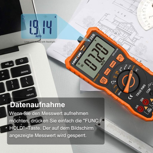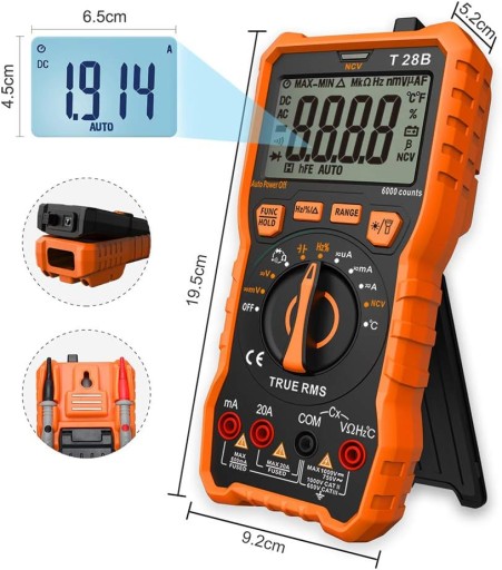 6000 pomiarów - może mierzyć napięcie i prąd AC/DC, diody, opór, pojemność, częstotliwość, czas włączenia, temperaturę oraz automatycznie wyświetla jednostki i symbole.