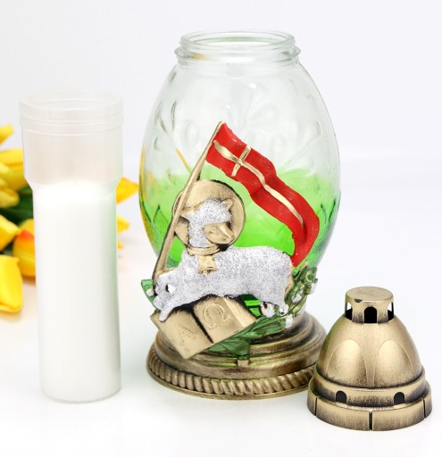 Ofertą sprzedaży jest 1szt. znicza - typ WIELKANOCNE JAJO z aplikacją BARANKA,