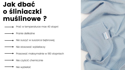 Śliniaczek pomimo częstego prania przez długi czas będzie wyglądał świetnie i zachowa świeżość koloru, ale musisz pamiętać o kilku zasadach dbania o prawdziwy muślin: :)