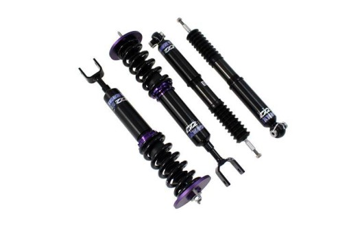Dzięki zaawansowanej 36 stopniowej regulacji twardości można dostosować zawieszenie do własnych potrzeb czyniąc je ekstremalnie twardym bądź też ustawić twardość zbliżoną do serii. Zastosowana stal SAE9254 zapobiega zmianie kształtu sprężyny oraz dzięki stopowi aluminium 6061 zawieszenie odporne jest na korozję. Regulacja wysokości od -60mm do +30mm w stosunku do oryginalnego zawieszenia. W linku poniżej jest dostępna tabela zawierająca dane o twardości sprężyn w danym zawieszeniu: TWARDOŚĆ SPRĘŻYN D2 Charakterystyka pracy zawieszenia: Zestaw składa się z:
