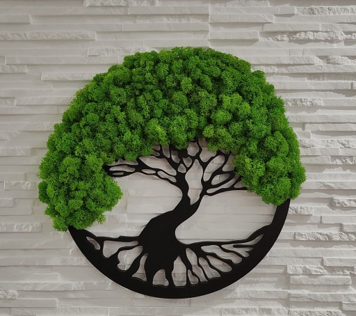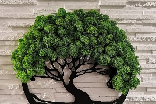 Wspaniały obraz - drzewko szczęścia z korzeniami z mchem chrobotkiem.