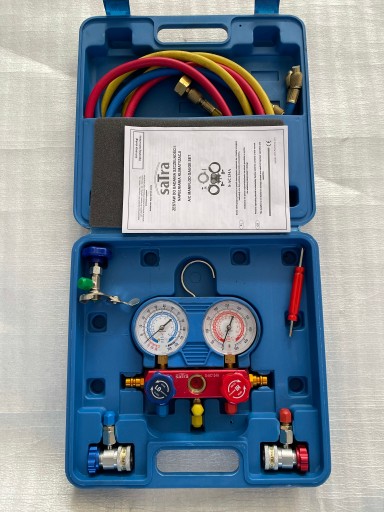 Profesjonalny zestaw badania szczelności i napełniania klimatyzacji SATRA jest idealnym rozwiązaniem do samodzielnego sprawdzania systemów klimatyzacyjnych.