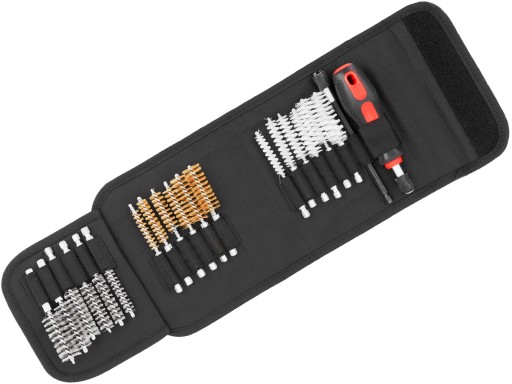 - 18 szt. szczotek 1/4" (3x 6 szt. o średnicach 9,11,13,15,17,19 mm)