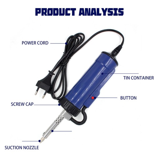 ✅Pompa rozlutowująca wykonana jest ze stali nierdzewnej, miedzi i materiału EVA, co zapewnia odporność na korozję i trwałość, a także maksymalną trwałość. Możesz cieszyć się samodzielnym i ciągłym rozlutowywaniem. Ta pompa rozlutowująca nadaje się do usuwania cyny z grubowarstwowego układu scalonego i dużego elementu.