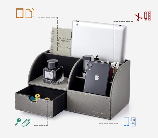 - ✅ Organizer na biurko wykonany jest z wytrzymałej i wodoodpornej sztucznej skóry.