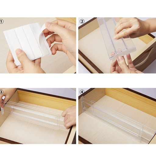 ✅Szybki i łatwy w instalacji, nie wymaga żadnego sprzętu ani narzędzi. Wystarczy przykleić taśmę dwustronną (w zestawie) do przekładki, oderwać taśmę, ustawić ją w odpowiednim miejscu, a następnie przykleić przekładkę do przegródek szuflad, rozciągnie się na żądaną długość i będzie można ją stabilnie trzymać w szufladach.