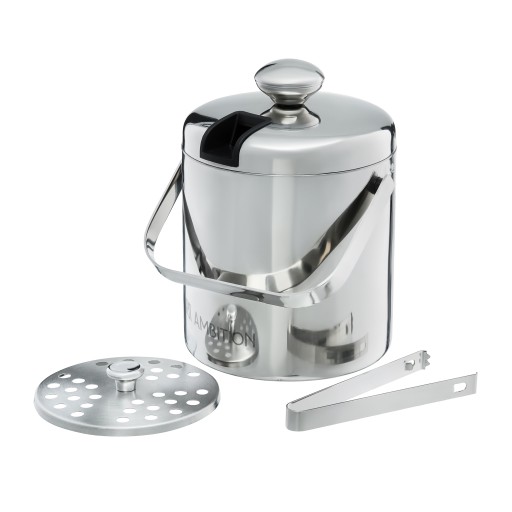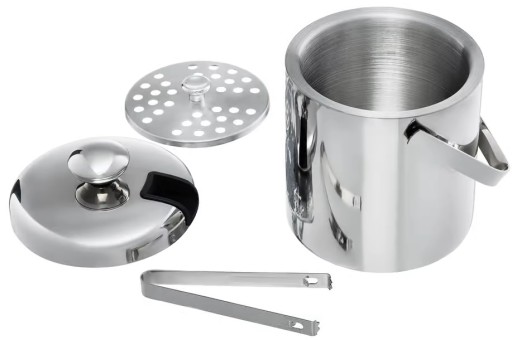 Termoizolacyjny pojemnik na lód z podwójną ścianką, wykonany został ze stali nierdzewnej. Dzięki swoim właściwościom termoizolacyjnym, zapobiega szybkiemu topieniu się lodu. Posiada pokrywkę oraz rączkę do przenoszenia. Wyposażony został w sitko do odcedzania oraz szczypce, które można wsunąć w pokrywę, dzięki czemu całość zajmuje niewiele miejsca. Niezastąpiony, gdy chcemy zaserwować lód do napojów, koktajlów i drinków.