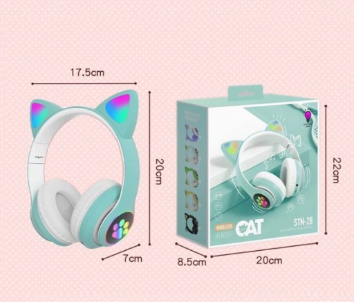 Słuchawki bluetooth z uroczymi kocimi uszami (podświetlenie LED) dla dzieci posiadają też wbudwany port karty SD dzięki, której muzyka może być odtwarzana bezpośrednio z urządzenia (bez konieczności korzystania z funkcji Bluetooth) DANE TECHNICZE: Bluetooth 5.0 / Częstotliwość 2.402 GHz-2.480 GHz / Zasięg 10m / Pasmo przenoszenia 20Hz-20000Hz / Bateria 400 mAh / Czas ładowania ~2,5h / Ładowanie USB (zasilacz sieciowy) / Max. czas rozmów ~7h / Max. czas słuchania muzyki ~7h / Port karty SD / Dostępne w 5 kolorach: czarne, niebieskie, miętowe, różowe oraz fioletowe.