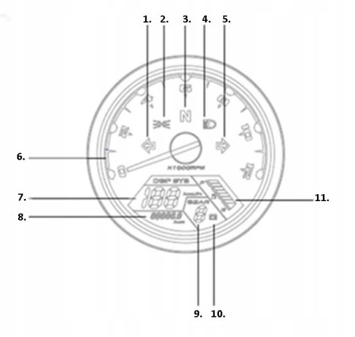 Tarcza licznika posiada duży wyświetlacz LCD, którego główną funkcją jest wyświetlanie dokładnej prędkości. Kontrolki, jak i obrotomierz świecą się zieloną i niebieską barwą.