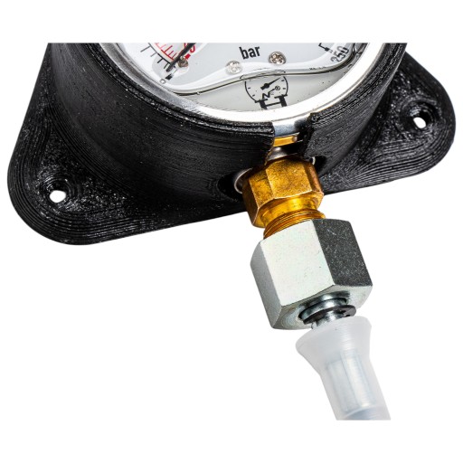 Czytelny manometr o zakresie 0-250 bar wraz z mocowaniem.