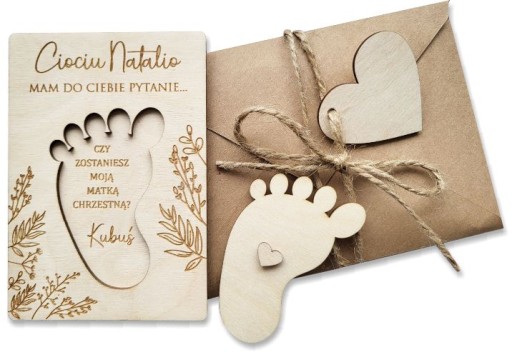DREWNIANA KARTKA Z PYTANIEM DO CIOCI LUB WUJKA