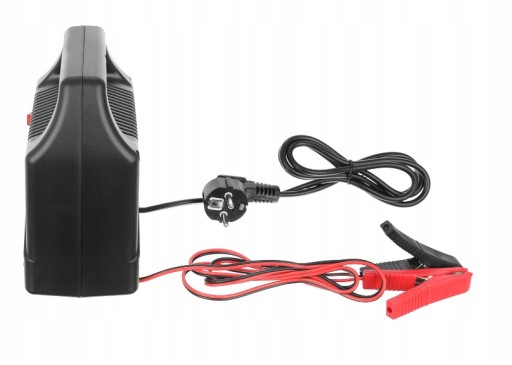 - SPECYFIKAJCA – kolor: czarny; materiał: tworzywo sztuczne; wyjście: AC110V / 230V: DC 12V; moc: 4,2A; maksymalny prąd ładowania: 6A; 6 lampek kontrolnych; przewody zasilające (dł): 1,5 m, kabel zasilający urządzenie (dł): 1,5m; wymiary (dł/szer/wys): 8,5/16/18 cm; waga: 1,5 kg