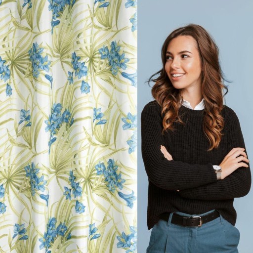 Штора 140х250 Мари бело-синяя с ярким цветочным принтом готова