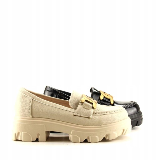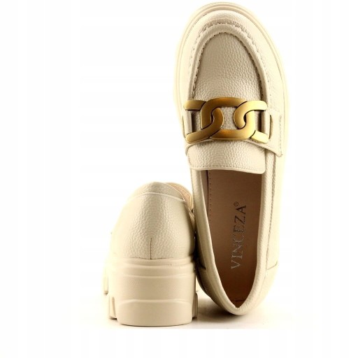 MOKASYNY Z ŁAŃCUCHEM VINCEZA 16370 BEŻOWE LICO