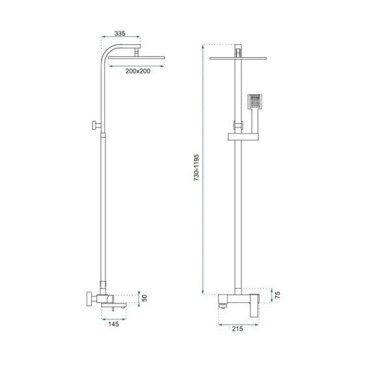 Смеситель для ВАННОЙ ДУША с тропическим душем F170B ЧЕРНЫЙ