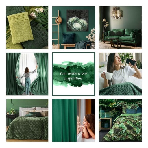 Zasłona 140x250 Julia zielona ciemna gotowa na przelotkach welurowa z wytłaczanym geometrycznym wzorem wachlarzy Eurofirany