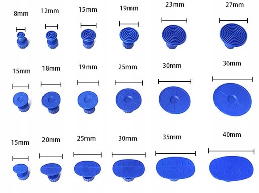 - 18 grzybków/adapterów do wyciągania wgnieceń o różnej wielkości