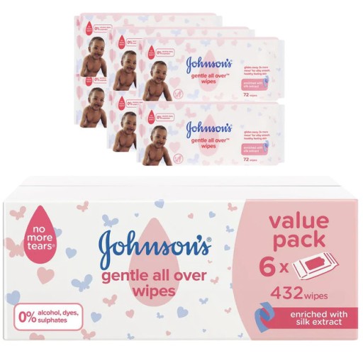 JOHNSON’S® Gentle All Over™ chusteczki nawilżane 6 x 72szt zestaw