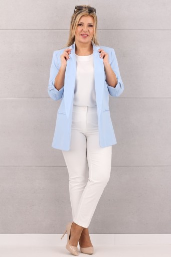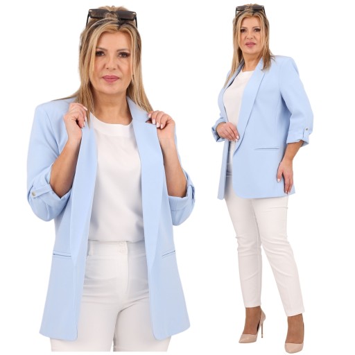 Ta wyjątkowa marynarka to esencja elegancji i nowoczesnego szyku. Jej dłuższy, smokingowy fason nadaje charakteru, podkreślając zarazem subtelność i ponadczasowy design. Wykonany z gładkiego materiału jest niezwykle uniwersalny, stanowiąc doskonałe dopełnienie zarówno codziennych jak i wieczorowych stylizacji.