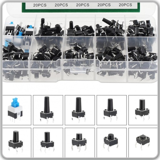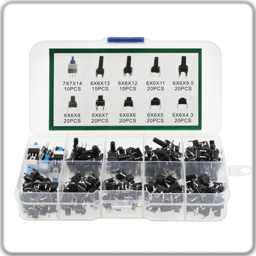 ✅Zestaw XXL przycisków tack switch micro-switch pudełko 180 szt.