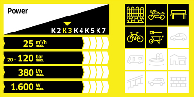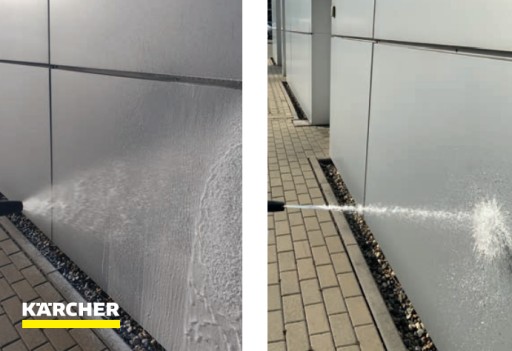 - Kärcher - wyższe ciśnienie robocze oraz wydatek wody, idealnie dobrane dysze do klasy urządzenia pozwalają uzyskać najlepszy efekt czyszczenia powierzchni płaskich.