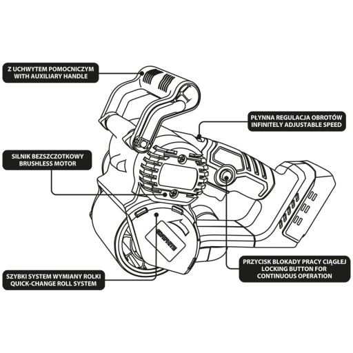 Satyniarka akumulatorowa Energy+ 18 V 58GE137 marki GRAPHITE to urządzenie należące do systemu akumulatorowego Energy+. Wielofunkcyjna polerka działająca z napięciem 18 V. Charakteryzuje się prędkością bez obciążenia 1500 – 3300 obrotów na minutę oraz regulacją prędkości. Posiada tarczę w rozmiarze 100 x 80 mm. Wyposażona w bezszczotkowy, wytrzymały silnik. Satyniarka z uchwytem pomocniczym oraz miękkim uchwytem dla wygodnego użytkowania. Zapewnia prostą obsługę dzięki beznarzędziowej wymianie osprzętu. Jej czas pracy na biegu jałowym zależny jest od zastosowanego akumulatora: 2 Ah – 15 minut użytkowania, 4 Ah – 31 minut lub 6 Ah – 51 minut. Urządzenie można używać do usuwania nalotów, zarysowań, zbędnej warstwy materiału, korygowania wad powierzchni, czyszczenia szczotkami, satynowania czy nadawania powierzchniom struktury. W zależności od zastosowanego wałka istnieje możliwość uzyskania innego efektu obróbki – także tego z wysokim połyskiem. Satyniarka marki GRAPHITE polecana dla profesjonalistów i majsterkowiczów. Oferowana w zestawie z papierem ściernym i wałkiem.