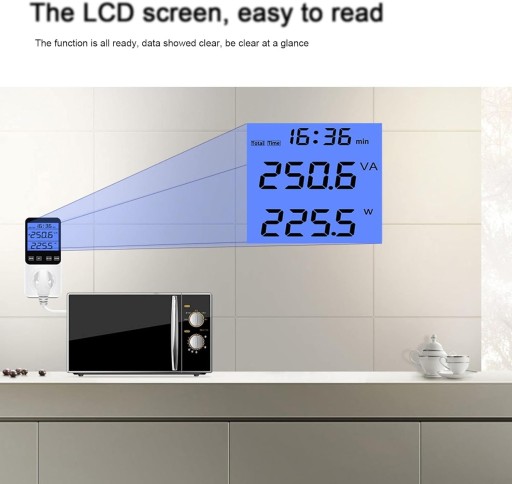 - * Ulepszony wyświetlacz LCD: Miernik mocy do gniazdka ściennego o szerokim kącie widzenia jest idealny do odczytu i rejestrowania danych pod dowolnym kątem. Nie musisz już stać przed wyświetlaczem i pochylać się nad liczbami, zwłaszcza jeśli licznik prądu nie znajduje się na wysokości oczu lub jest widoczny tylko pod jednym kątem.