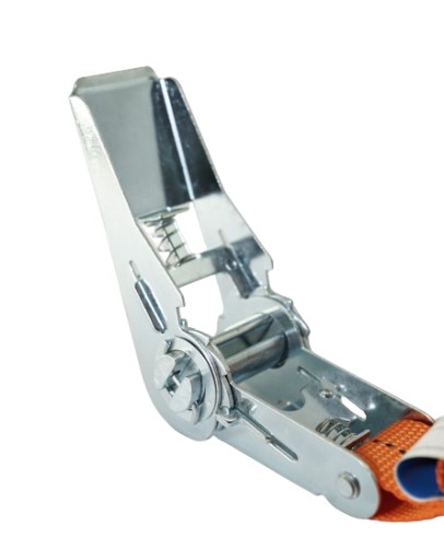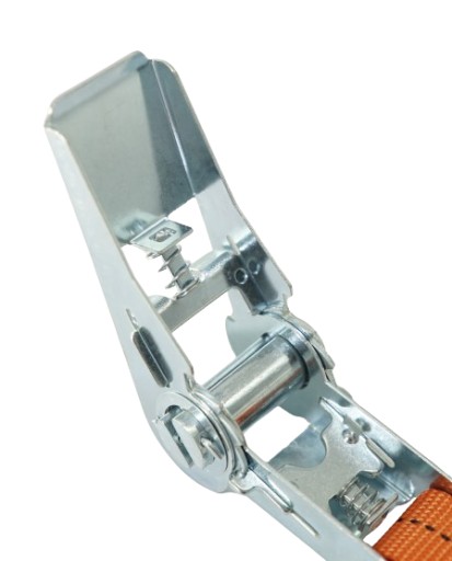 Pas transportowy wyposażony jest w napinacz (klamra z grzechotką) wykonany z grubej i wytrzymałej stali.