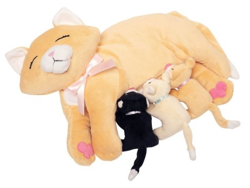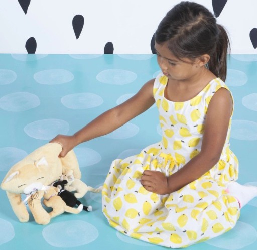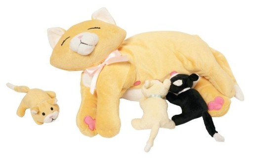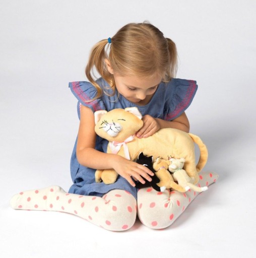 Pluszowa kocia mama ze swoimi trzema kociętami z magnesami, dzięki którym połączą się ze swoją mamą to zabawka obok której nie można przejść obojętnie. Wykonana z delikatnego pluszu, ręcznie szyte detale. Jest w pełni bezpieczna dla najmłodszych, nie ma żadnych twardych elementów, mogących stwarzać zagrożenie - nawet oczka i noski są wyszywane, a wąsiki wykonane z włóczki.